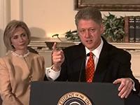 Tonight’s installment of The Nineties is called “The Comeback Kid,” and is all about the volatile presidency of Bill Clinton. It begins with ABC anchor Peter Jennings issuing an incredulous turn of events: “The impossibility of impeaching the President,” he tells his viewers, “must now be addressed. What follows is a tale that, in many ways, sounds astoundingly familiar, with a protracted and divisive battle over health care reform, the surfacing of a headline-grabbing scandal, the appointment of, and investigation by, a special prosecutor, and the denials by the President of the United States of any wrongdoing. One image, with Clinton issuing his public  denial of having “sexual intercourse with that woman, Monica Lewinsky,” looks uncomfortably like the opening image of The Good Wife, with Hillary Clinton standing in support, but clearly uncomfortable, at his side. (Other moments from the Nineties and The Nineties, like the passage of a balanced budget, seem like a much more distant and disconnected memory.) In trying to contextualize today’s current events, the Seventies and Watergate would seem to be the pertinent go-to (or go-back-to) decade – but The Nineties makes a strong case that the Nineties, too, has something to tell and teach us about what’s happening now, and what might well happen next.
