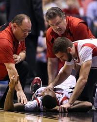 This year’s tournament delivered plenty of shocking moments and high drama even before Kevin Ware’s stunning, emotional injury in last weekend’s Louisville-Duke game. Now that story, as it continues tonight, is the biggest story of the tournament. Louisville, inspired by Ware’s words of encouragement after breaking his leg during a routine play, went on to beat Duke, and is the only remaining No. 1 seed in the Final Four. Normally, you’d tend to root for the underdog, but it’s hard not to feel, and root, for Louisville. They play tonight’s first game on CBS, against feisty No. 9 seed Wichita State, this year’s Cinderella team. What drama, either way. And at 8:45 p.m. ET, also on CBS, comes the other Final Four contest, pitting two No. 4 seeds: Syracuse vs. Michigan. Michigan made it this far because of a buzzer-beating three-pointer to topple top-seeded Kansas, while Syracuse has made it this far because of its smothering, game-controlling defense. If you’re betting on these games, bet on this: the ratings will be huge. Maybe even unprecedentedly so.